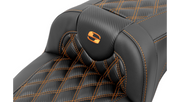 SADDLEMEN Roadsofa Extended Reach Seat - with Backrest - Lattice Stitch - Orange Stitch - FLTR/FLHX '23-'25 - 823-07-207B3