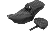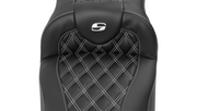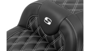 SADDLEMEN Roadsofa Extended Reach Seat - with Backrest - Lattice Stitch - White Stitch - FLTR/FLHX '23-'25 - 823-07-207B6