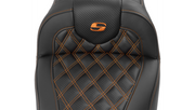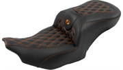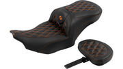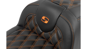 SADDLEMEN RoadSofa Seat - with Backrest - Carbon Fiber - Lattice Stitch - Orange Stitch - FLTR/FLHX '23-'25 - 823-07-206B3