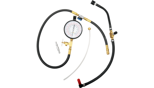 Includes all necessary parts to diagnose Delphi fuel injection; a large gauge assembly, 8" hose, 2" hose, fuel tank connection hose, throttle body...